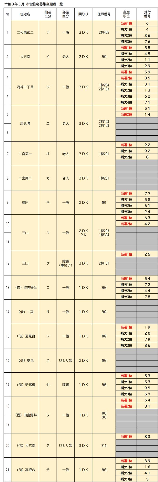 市営住宅入居者募集抽選結果(令和8年3月募集)